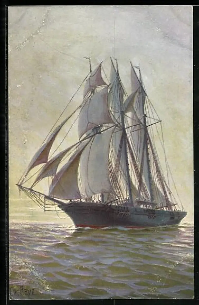 Künstler-AK Chr. Rave: Als Schonerbark getaklter deutscher Kreuzer