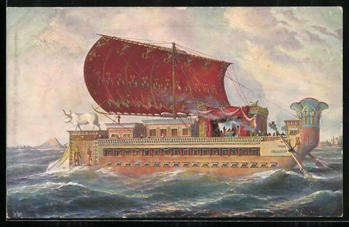 Künstler-AK Christopher Rave: Ägypten, Prachtschiff der Königin Kleopatra, 40 v. Chr.