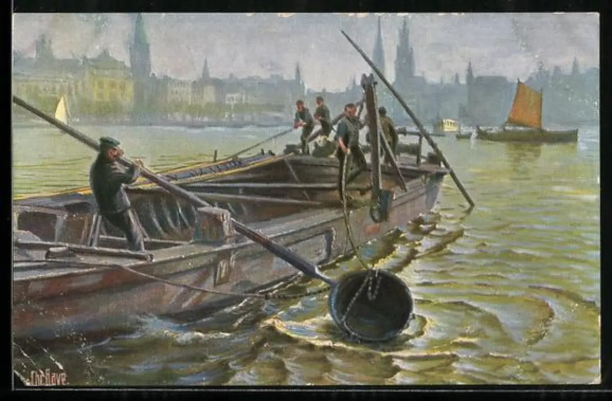 Künstler-AK Christopher Rave: Baggerschiffe auf der Alster