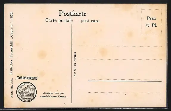 Künstler-AK Christopher Rave: Britisches Turmschiff Captain, 1870