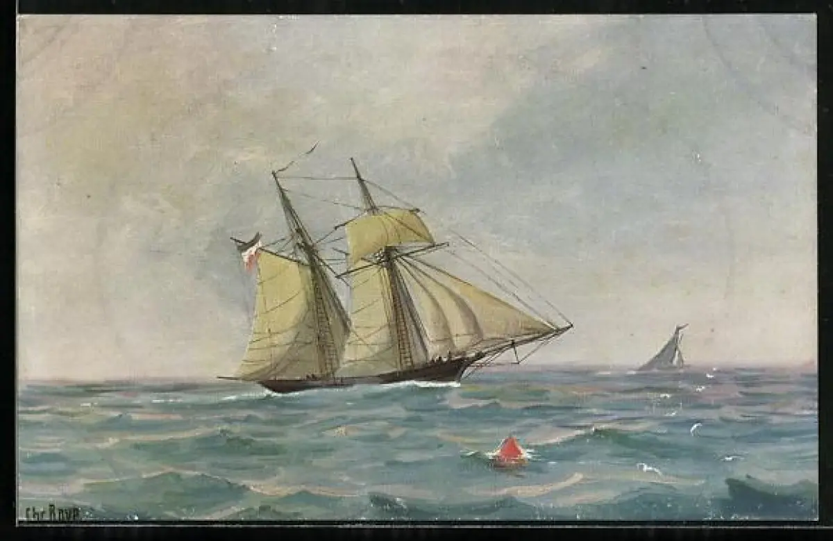 Künstler-AK Christopher Rave: Deutscher Schoner um 1840 auf ruhiger See