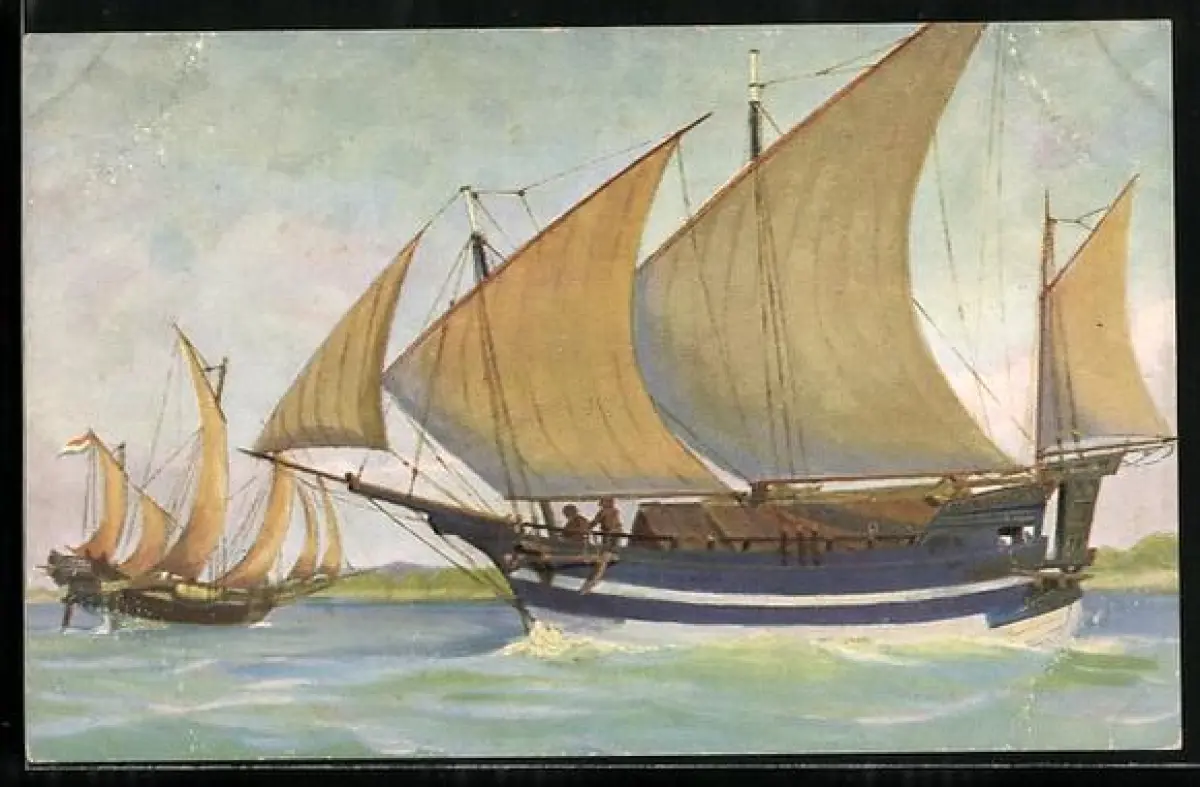 Künstler-AK Christopher Rave: Dreimastboote, Java