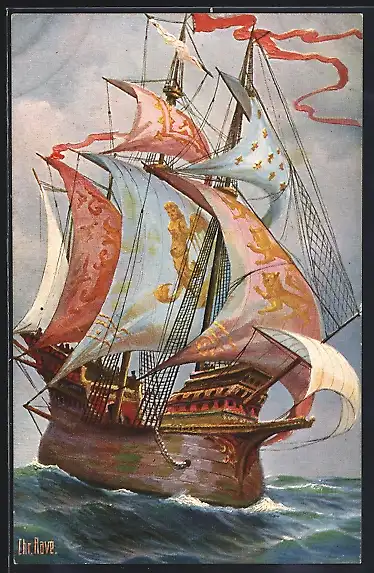 Künstler-AK Christopher Rave: Engl. Kriegsschiff, 15. Jahrhundert