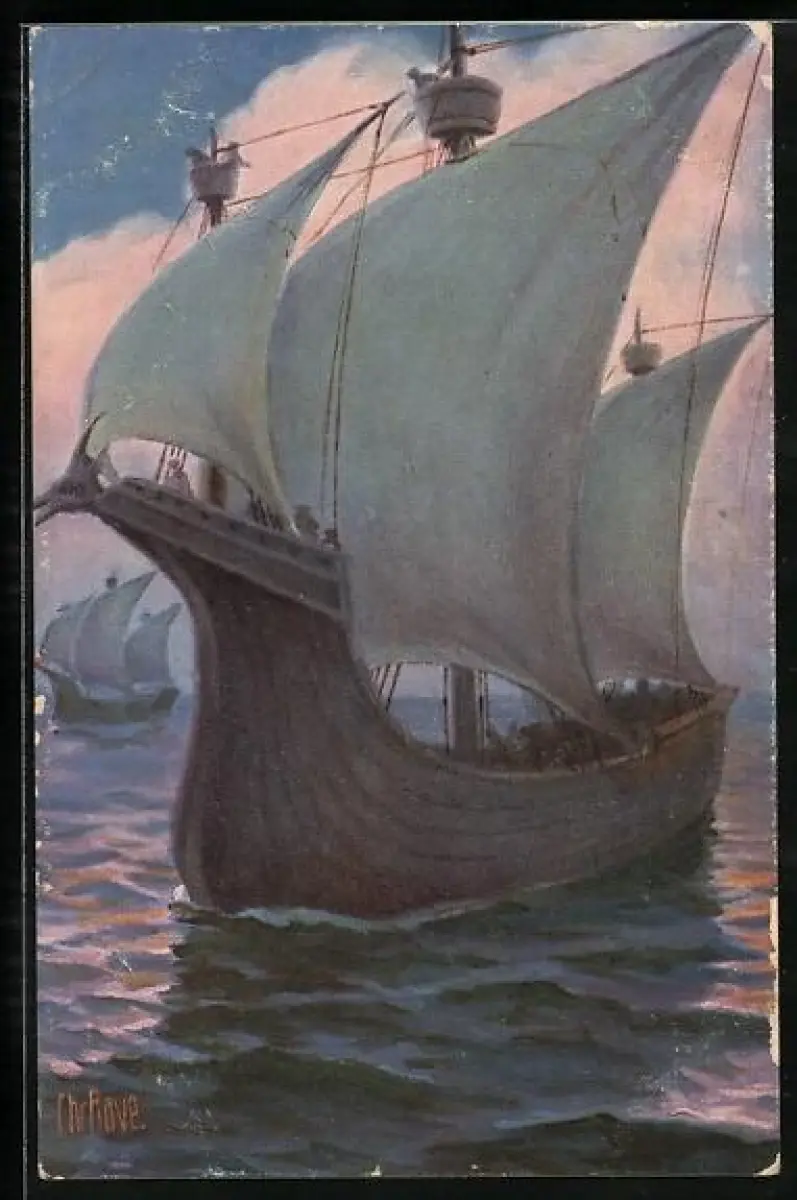 Künstler-AK Christopher Rave: Engl. Kriegsschiff unter Edurard III., 1335
