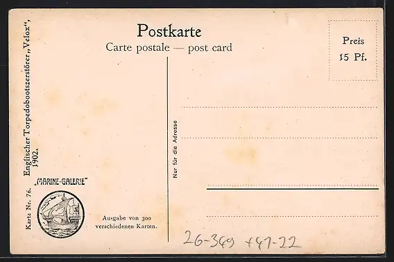 Künstler-AK Christopher Rave: Engl. Torpedobootszertörer Velox, 1902