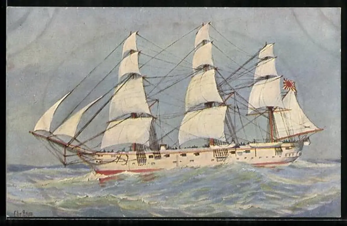 Künstler-AK Christopher Rave: Erstes japan. Kriegsschiff Tsukuba, 19. Jh.