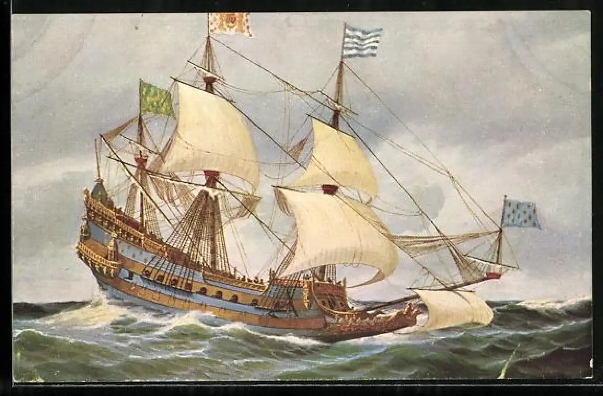 Künstler-AK Christopher Rave: Französisches Kriegsschiff Zweidecker La couronne, 1667