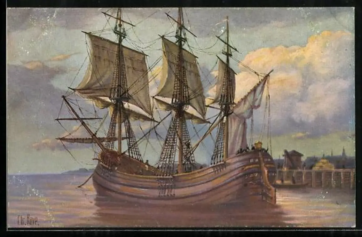 Künstler-AK Christopher Rave: Holländische Dreimaster Galjot aus dem 18. Jahrhundert