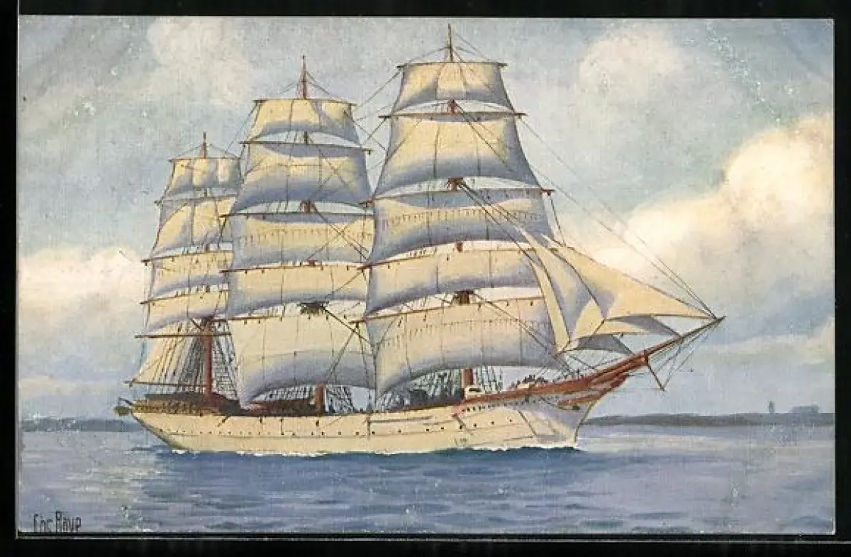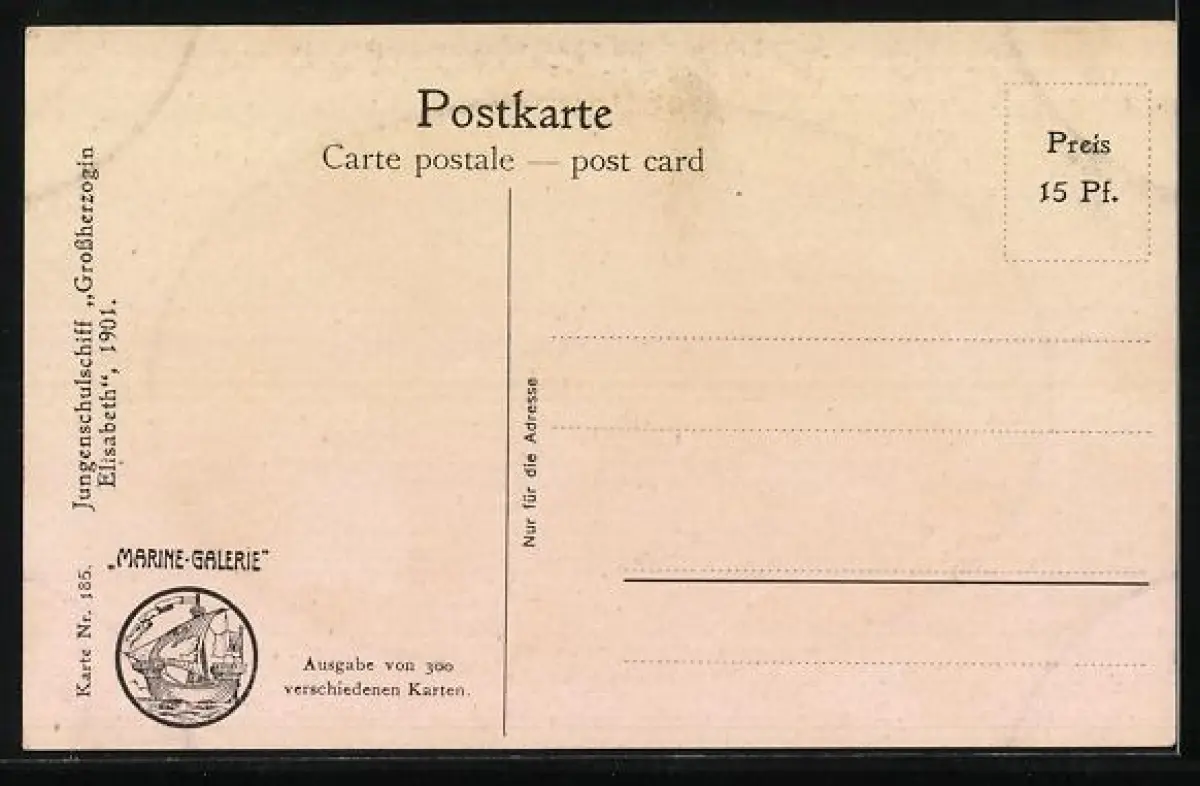 Künstler-AK Christopher Rave: Jungenschulschiff Grossherzogin Elisabeth, 1901