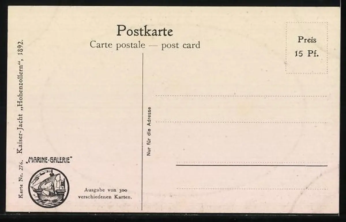 Künstler-AK Christopher Rave: Kaiser-Jacht Hohenzollern 1892