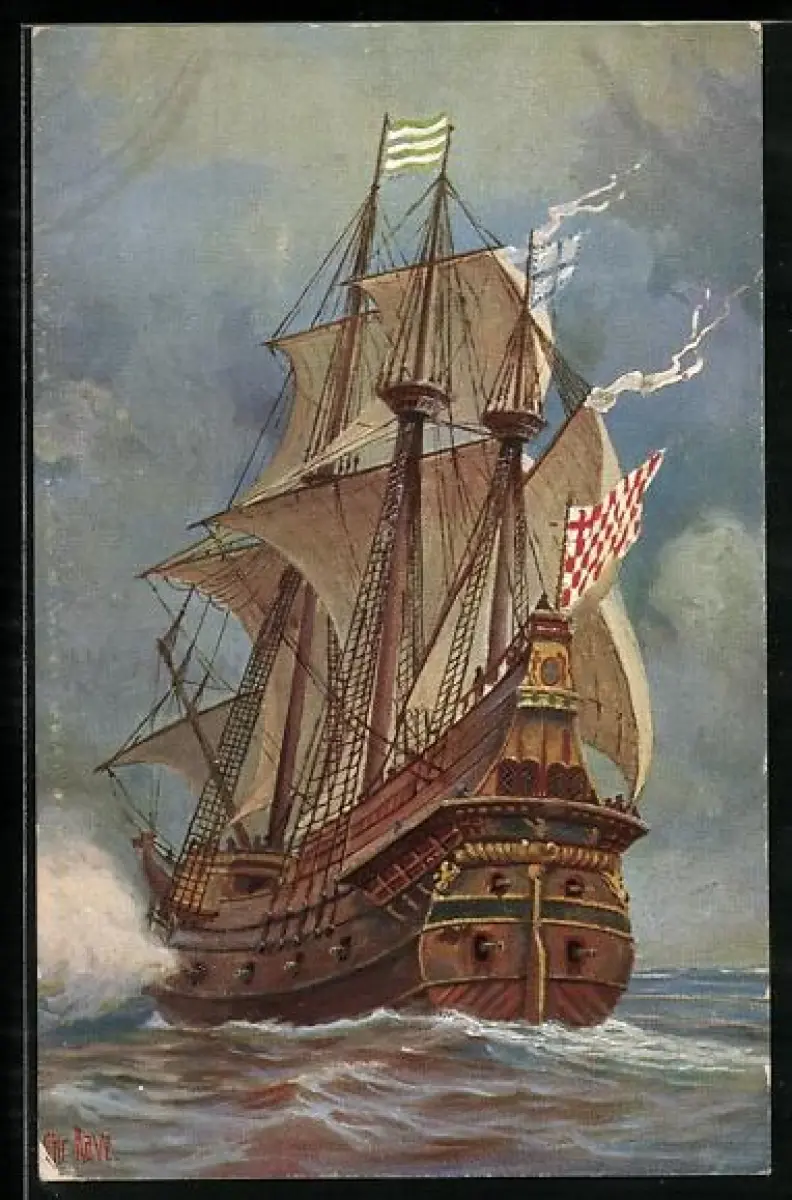 Künstler-AK Christopher Rave: Kriegsschiff, 16. Jahrhundert