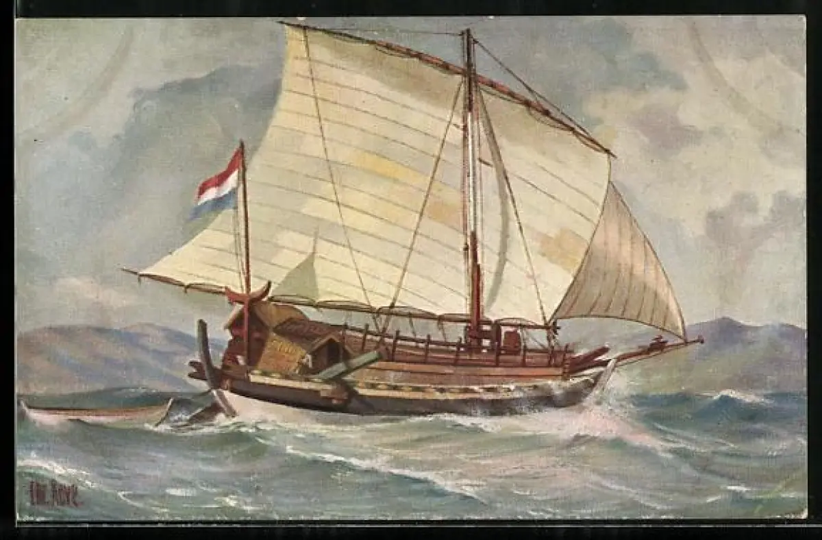 Künstler-AK Christopher Rave: Marine-Galerie, Karte Nr. 164, Javanisches Transportschiff 19. Jahrh.