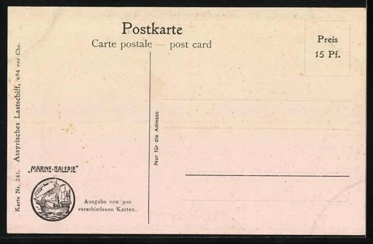 Künstler-AK Christopher Rave: Marine-Galerie, Karte Nr. 241, Assyrisches Lastschiff, 694 v. Chr.