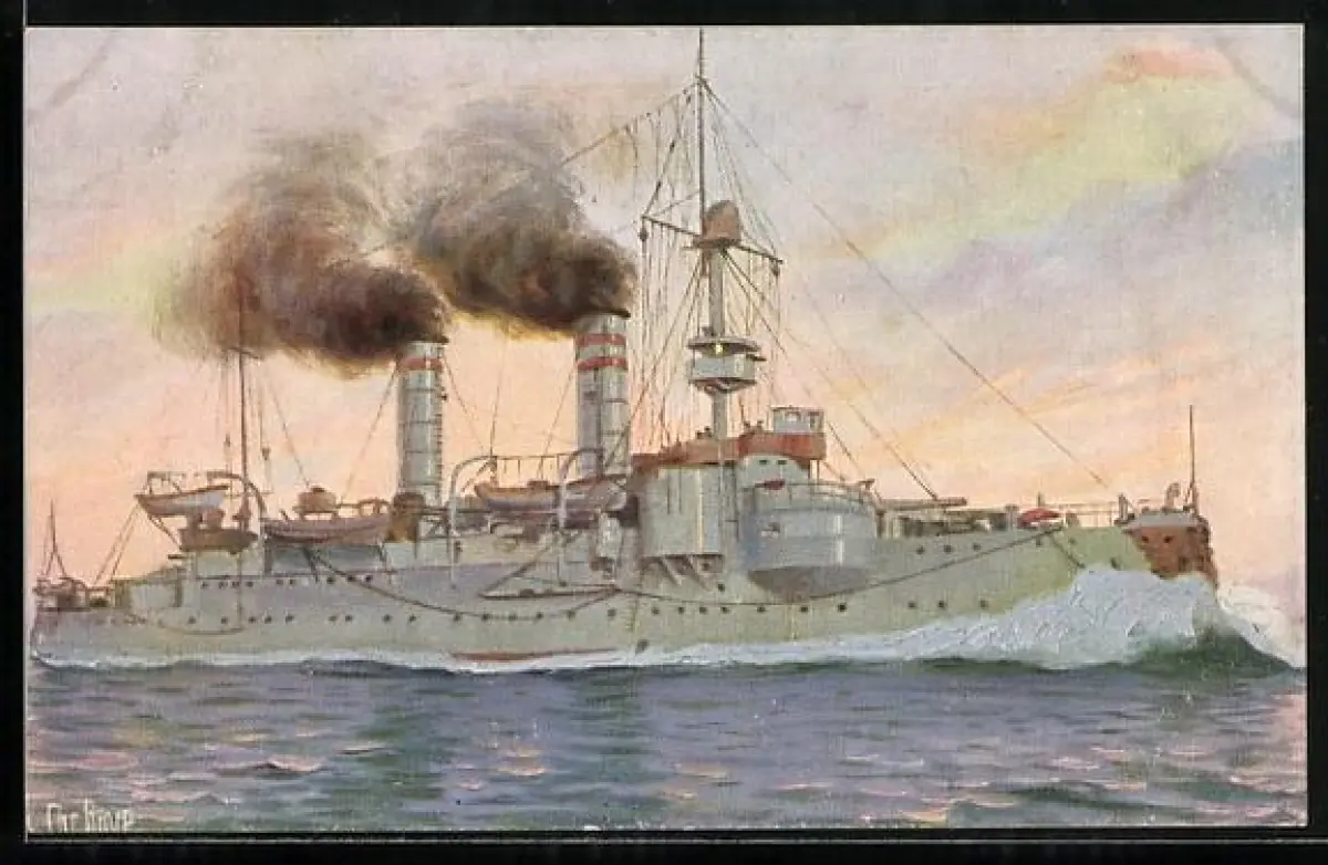 Künstler-AK Christopher Rave: SM Küstenpanzer Odin in Fahrt