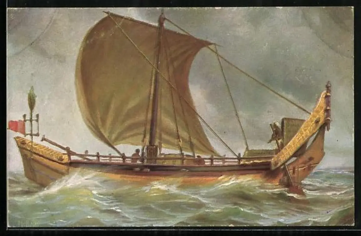 Künstler-AK Christopher Rave: Segelboot aus Hinterindien auf See