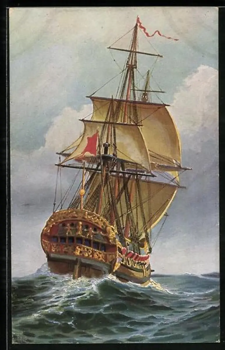 Künstler-AK Christopher Rave: Segelschiff Hamburger Konvoischiff im 18. Jahrhundert