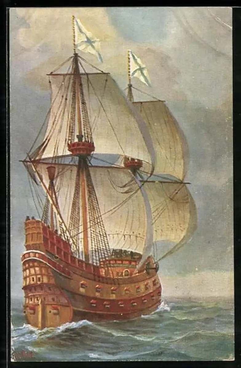 Künstler-AK Christopher Rave: Segelschiff Russisches Kriegsschiff, 16. Jahrhundert