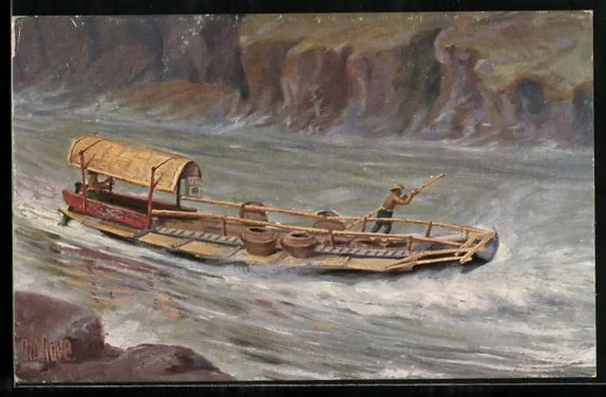 Künstler-AK Christopher Rave: Transportboot in den Stromschnellen