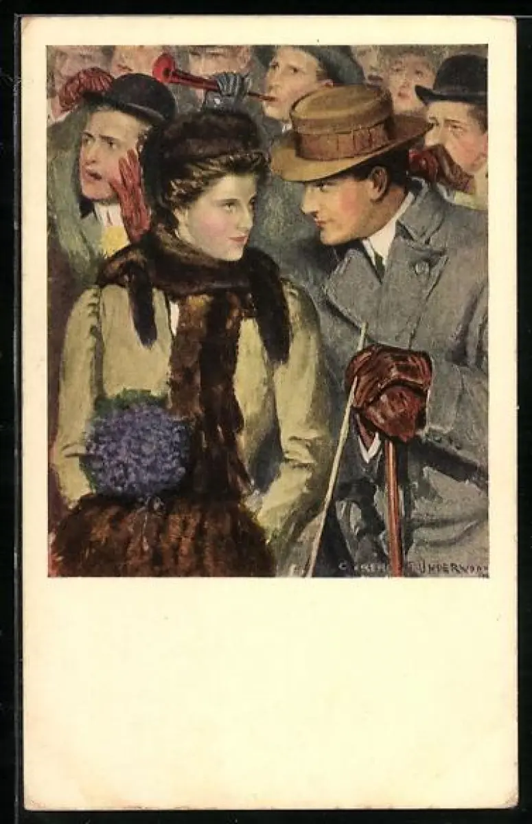 Künstler-AK Clarence F. Underwood: Paar in einer Menschenmenge