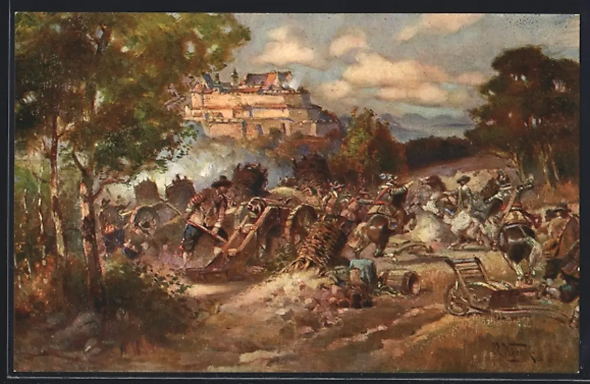 Künstler-AK Coburg, Belagerung der Feste Coburg durch Wallenstein 1632, Festungsbaufond
