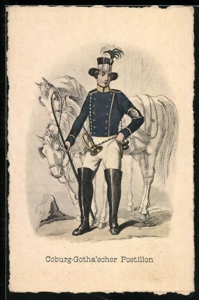 Künstler-AK Coburg-Gotha`scher Postillon mit Pferden