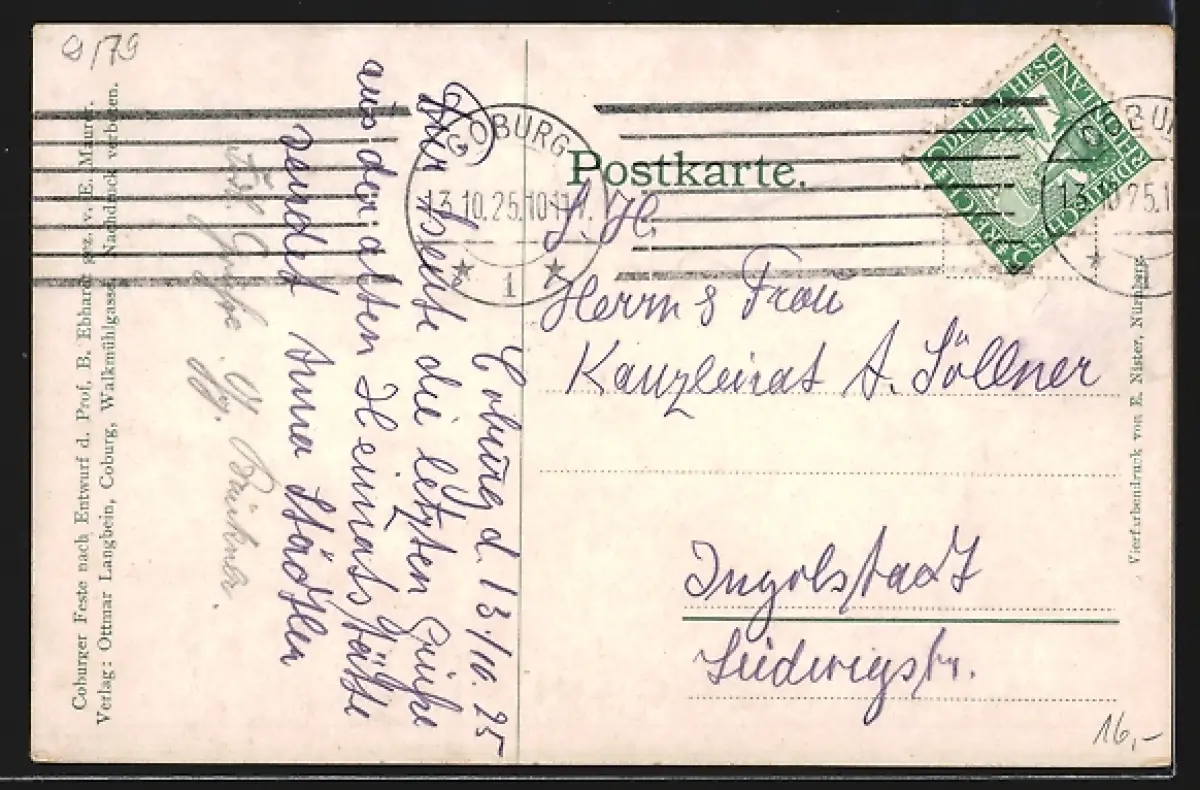 alte Ansichtskarte, gelaufen 1925, Stempelspur, guter Zustand