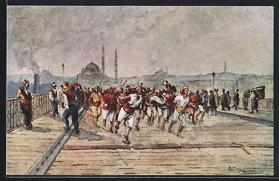 Künstler-AK Constantinople, Partie auf der Galatabrücke