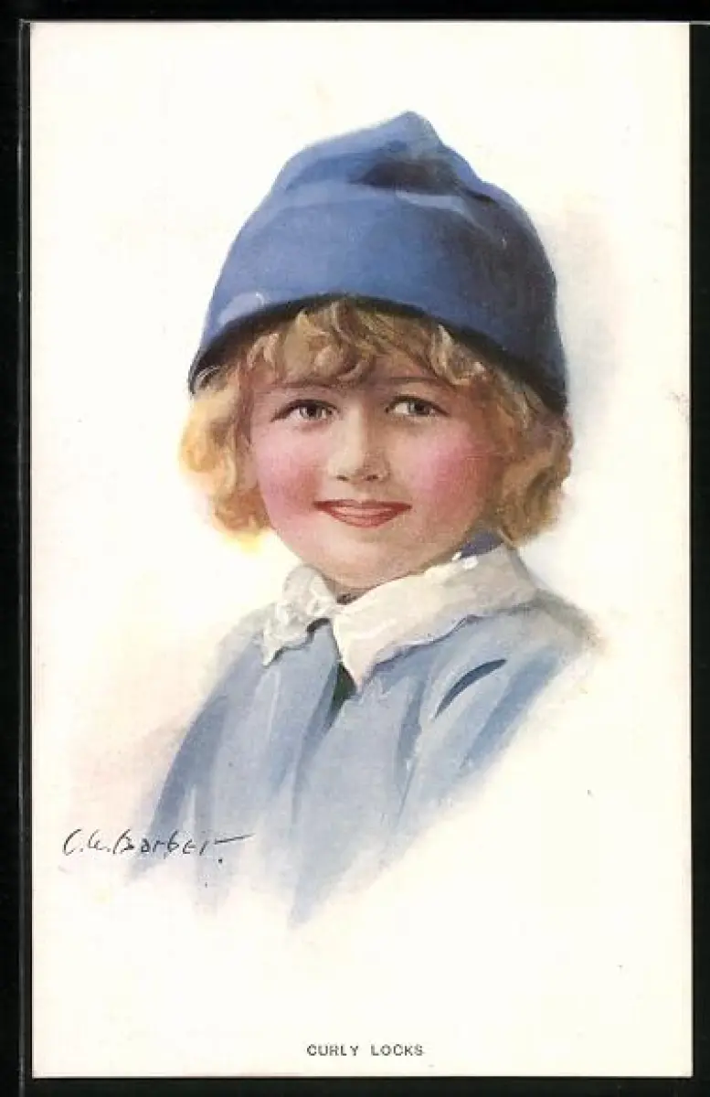 Künstler-AK Court Barber: Blondes Kind mit blauer Mütze und Locken