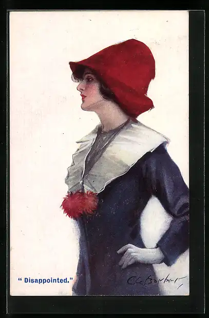 Künstler-AK Court Barber: Disappointed, junge Dame mit rotem Hut