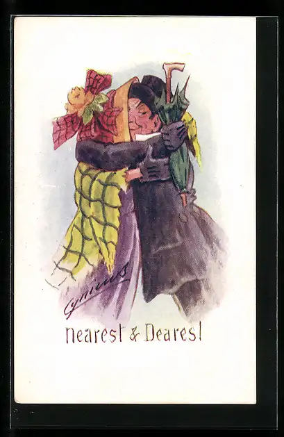 Künstler-AK Cynicus: Nearest and Dearest, Mann und Frau umarmen sich