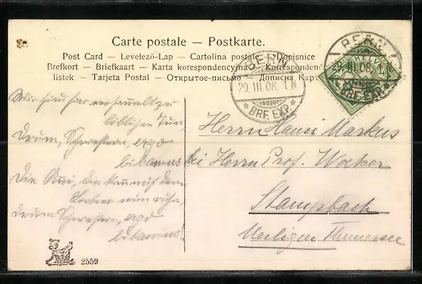 alte Ansichtskarte, gelaufen 1908, guter Zustand