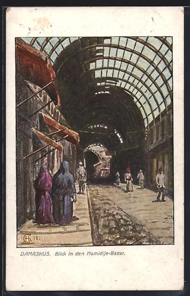 Künstler-AK Damaskus, Blick in den Hamidije-Bazar