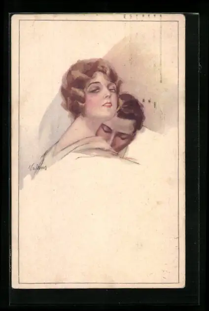 Künstler-AK Dame empfängt Liebkosung ihres Liebhabers