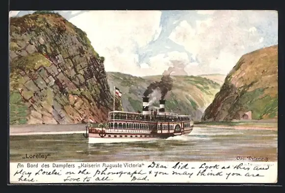 Künstler-AK Dampfer Kaiserin Auguste Victoria passiert Loreley