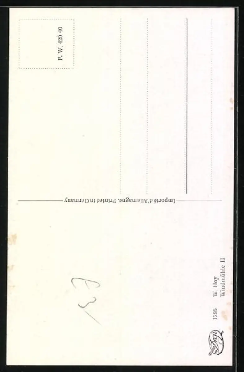 Künstler-AK Degi Nr. 1295: Windmühle II, W. Hoy, Ölgemälde-Imitations-AK
