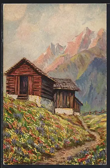 Künstler-AK Degi Nr. 1437: Gebirgseinsamkeit, Haus vor Bergen