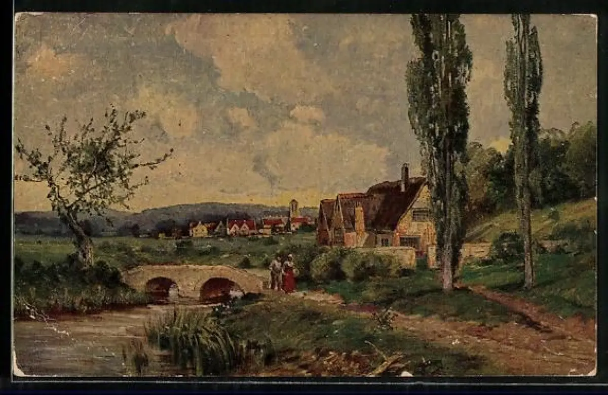Künstler-AK Degi Nr. 363, Ortspartie am Main