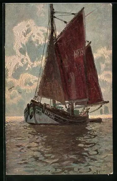 Künstler-AK Degi Nr. 387: Fischkutter von P. Schreckhaase, Ölgemälde-Imitations-AK