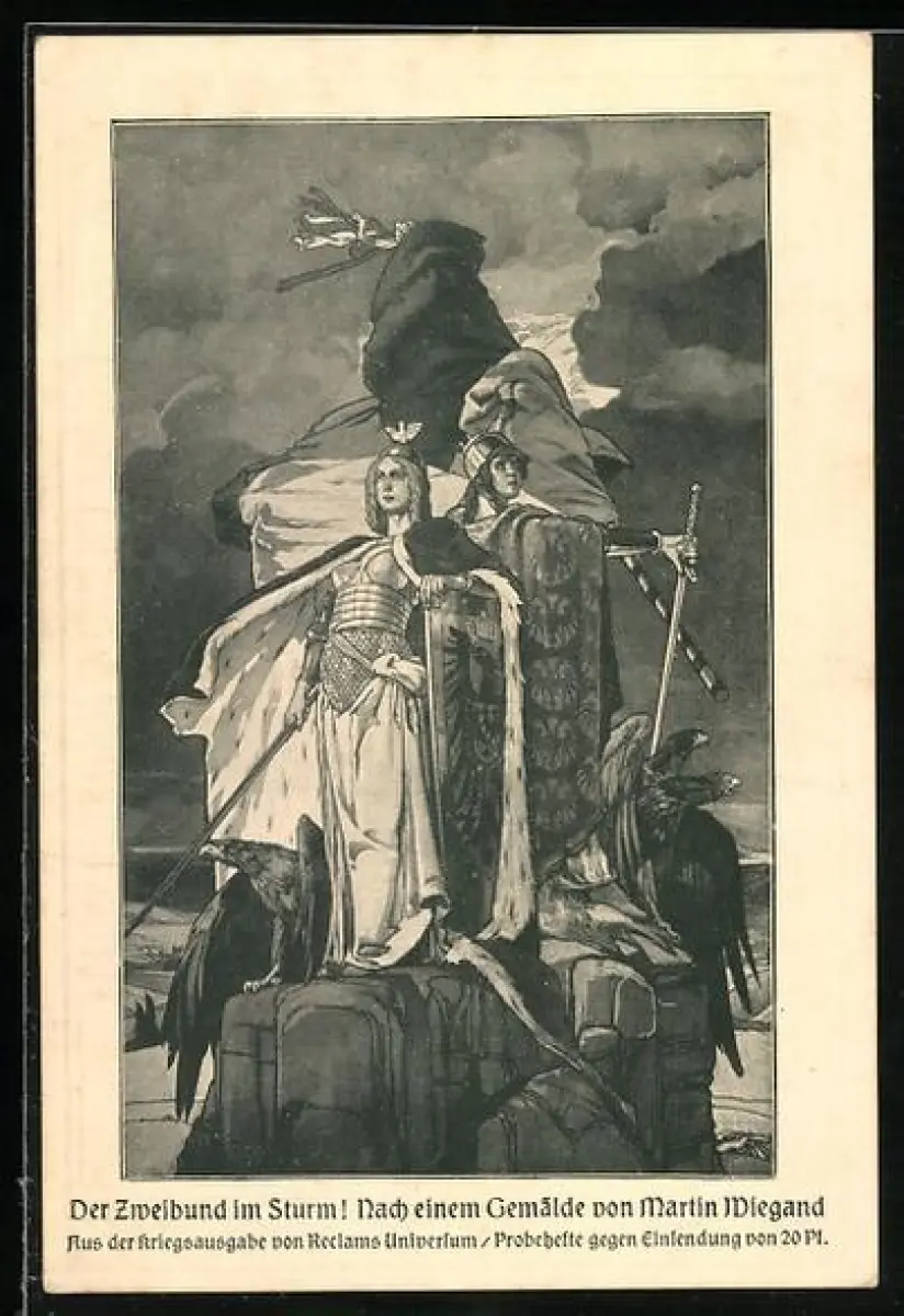 Künstler-AK Der Zweibund im Sturm, nach Martin Wiegand, Zweibund & Germanenkult
