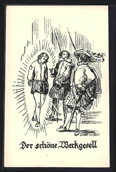 Künstler-AK Der schöne Werkgesell, Sage um den Wiener Stephansdom