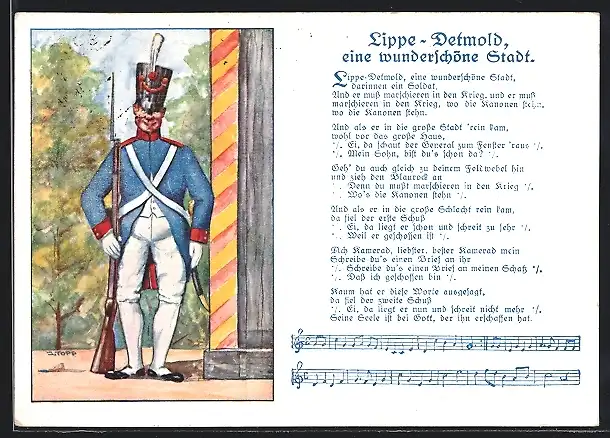 Künstler-AK Detmold / Lippe, Lied Lippe-Detmold eine wunderschöne Stadt, Wachsoldat auf Posten
