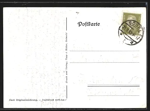 alte Ansichtskarte, gelaufen 1932, Eckknicke li. oben, Stempelspur, guter Zustand
