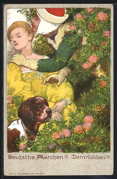 Künstler-AK Deutsche Märchen, Dornröschen in ihrem 100 jährigen Schlaf