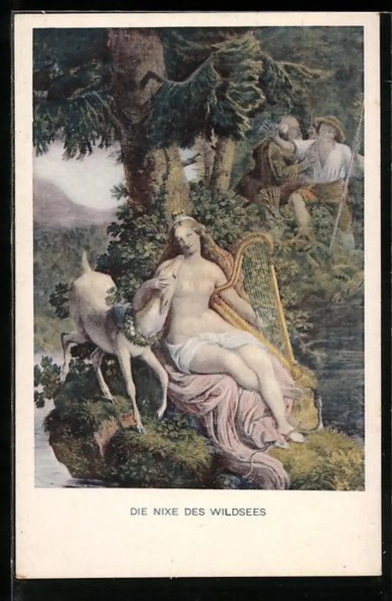 Künstler-AK Die Nixe des Wildsees mit Harfe
