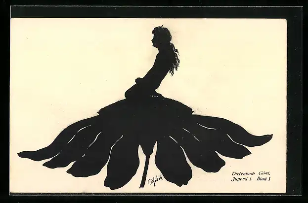 Künstler-AK Diefenbach: Göttliche Jugend I., Blatt 1, Mann kniet auf einer Blume, Schattenbild