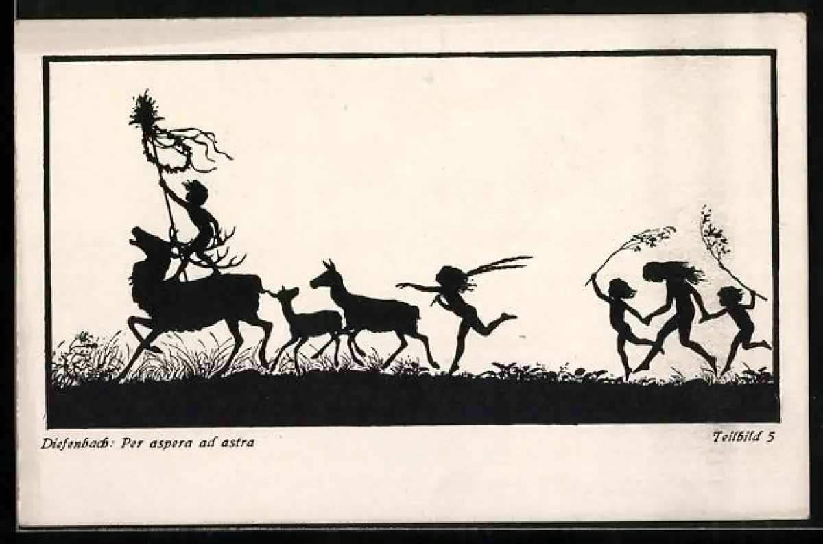 Künstler-AK Diefenbach: Per aspera ad astra, Teilbild 5, Kinder und Hirsch