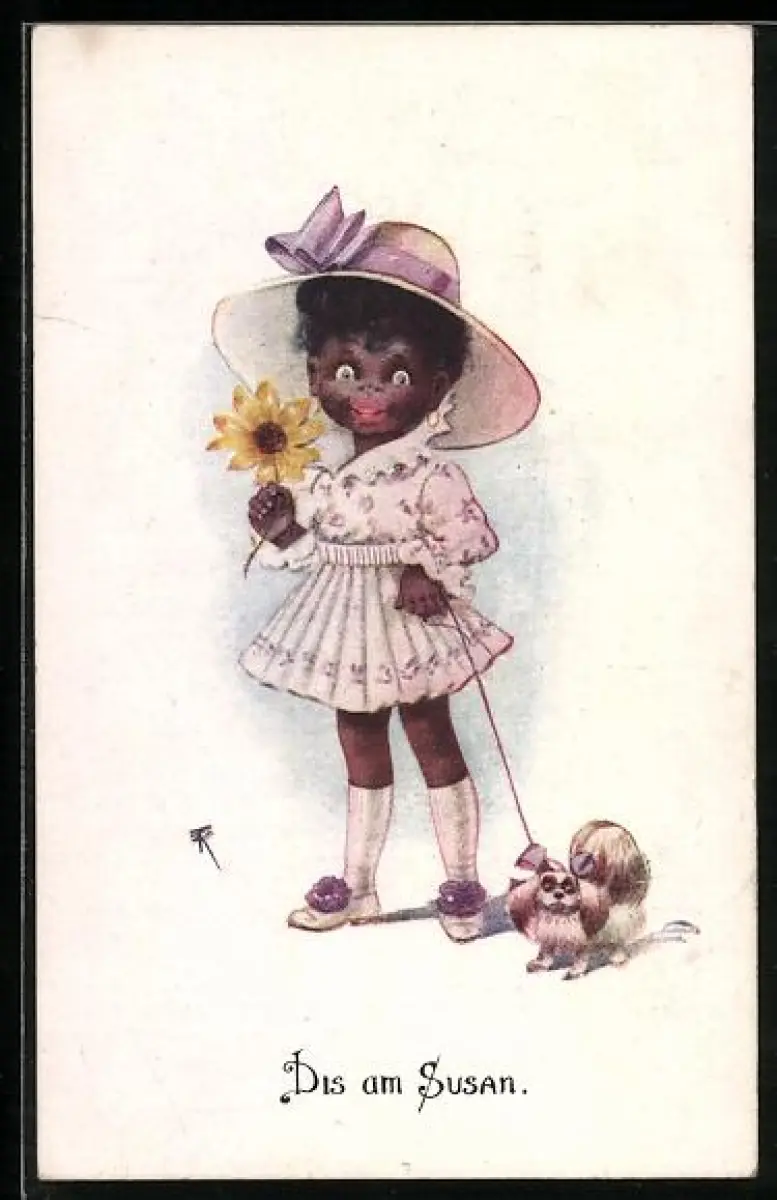 Künstler-AK Dis am Susan, Schwarzes Fräulein mit Hund