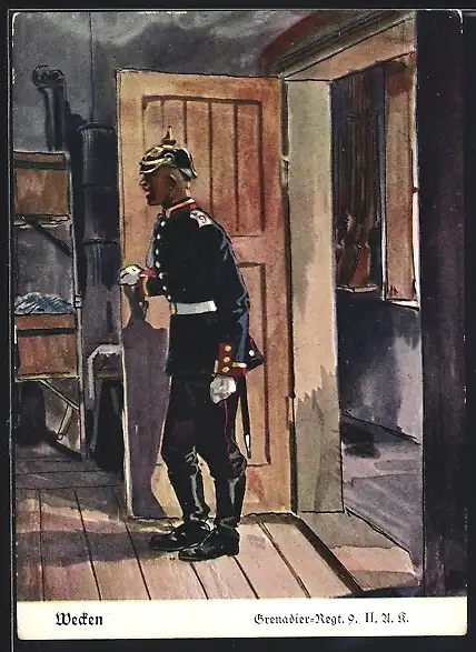 Künstler-AK Döbrich-Steglitz: Wecken, Grenadier-Regiment 9. II. U. R.