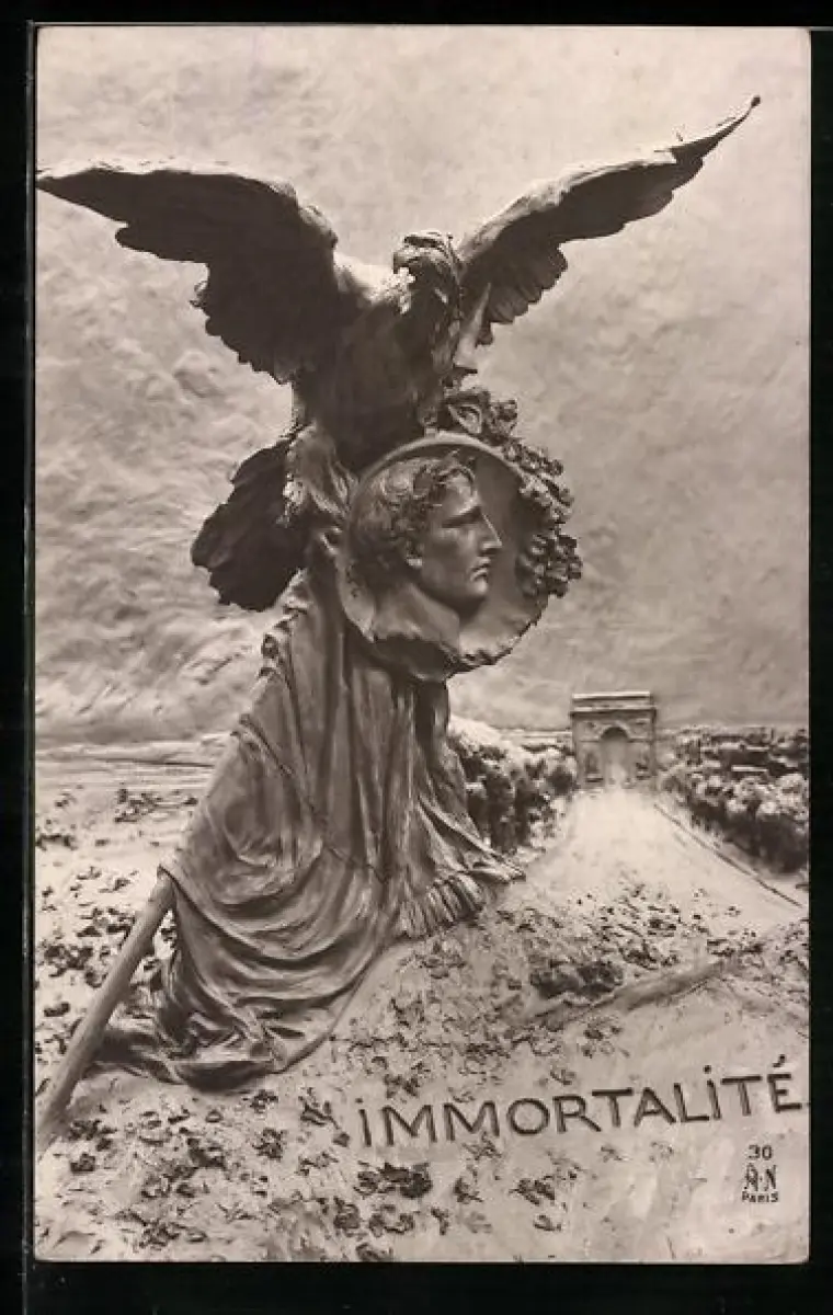 Künstler-AK Domenico Mastroianni: Immortalite, Adler mit einem Porträt Napoleons