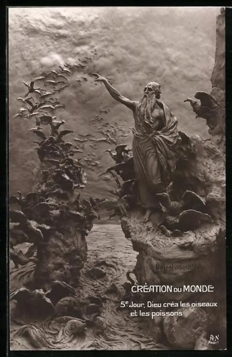 Künstler-AK Domenico Mastroianni: Schöpfung 5. Tag, Gott erschafft Vögel und Fische